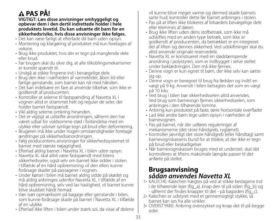 BRUGSANVISNING NAVETTA XL PRIMO VIAGGIO PEG PEREGO