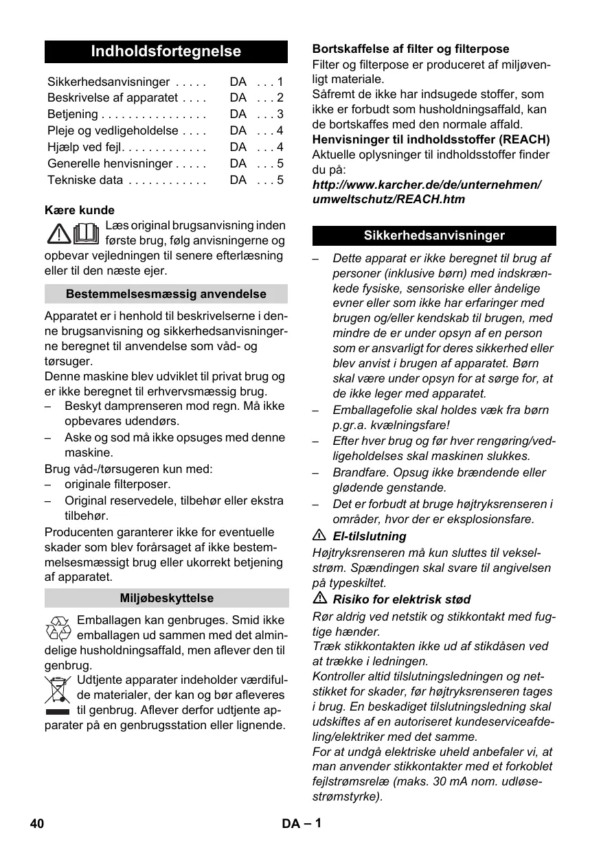 Le filtre et le sac du filtre sont fabriqués en matériaux recyclables. S'ils ne contiennent aucune substance aspirée dont l'élimination est interdite dans les déchets ménagers, vous pouvez les jeter dans les déchets ordinaires. Instructions relatives aux ingrédients (REACH) Les informations actuelles relatives aux ingrédients se trouvent sous : http://www.karcher.de/de/unternehmen/ umweltschutz/REACH.htm