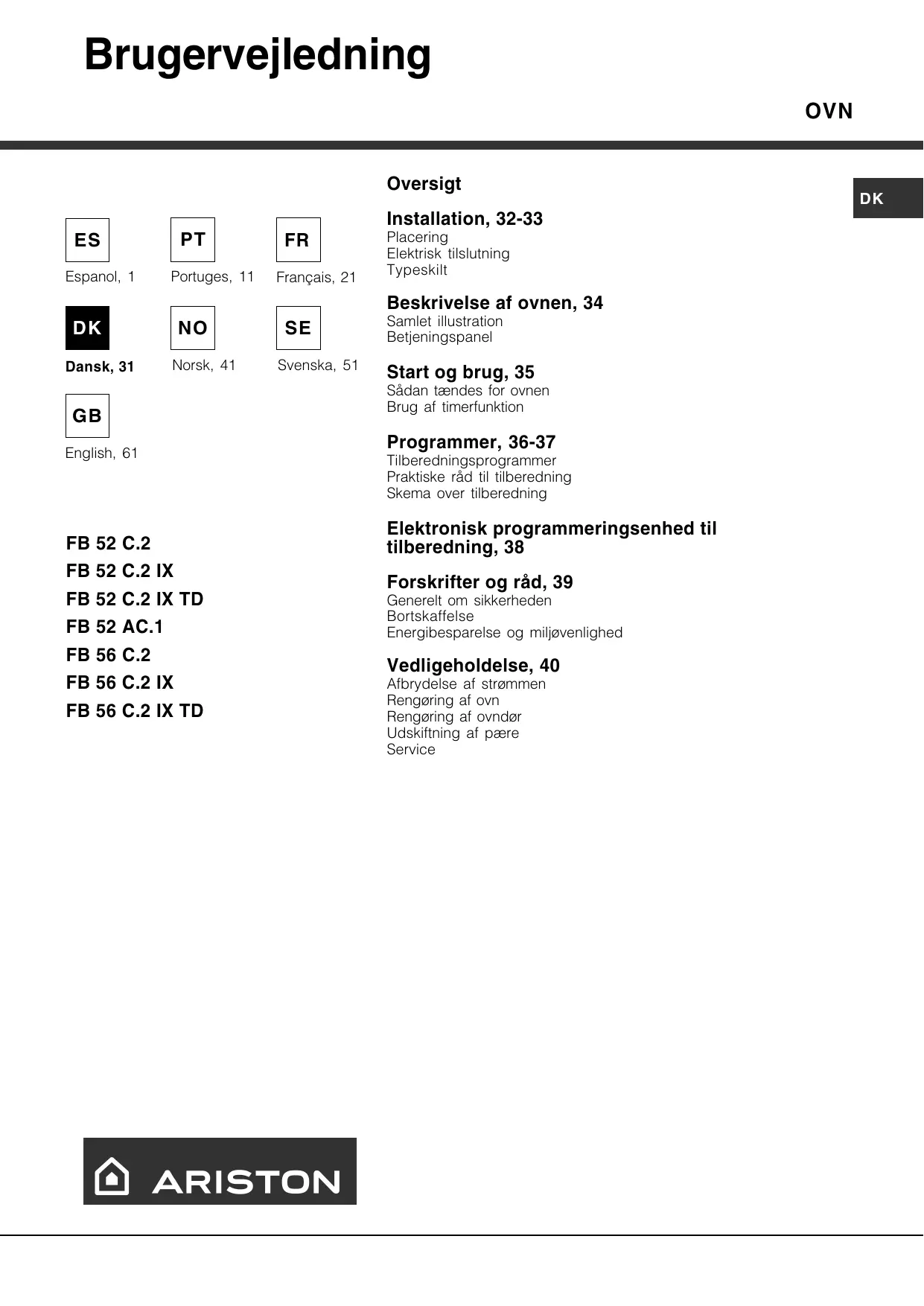 FB 52 C.2 IX - Indbygningsovn HOTPOINT - Notice d'utilisation et mode d'emploi gratuit