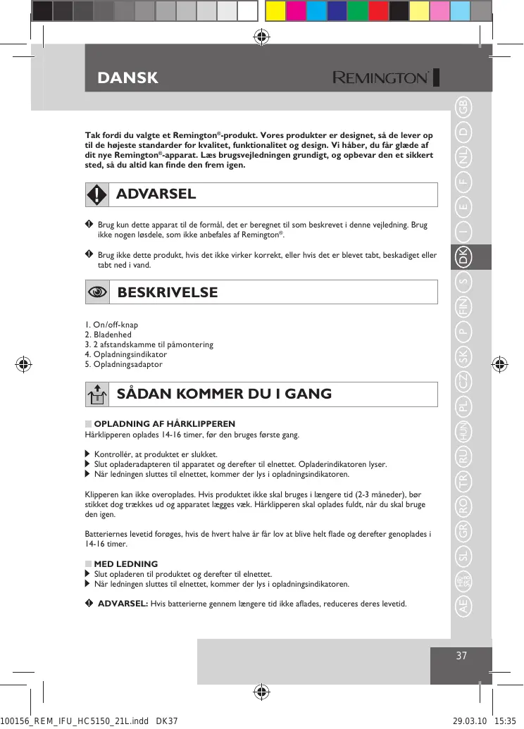 HC5950 - Hårklipper REMINGTON - Gratis brugsanvisning og manual