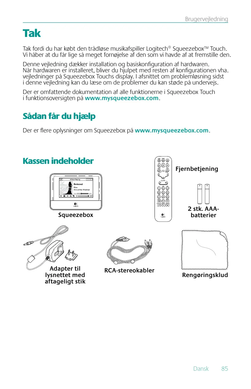 BRUGSANVISNING SQUEEZEBOX TOUCH LOGITECH