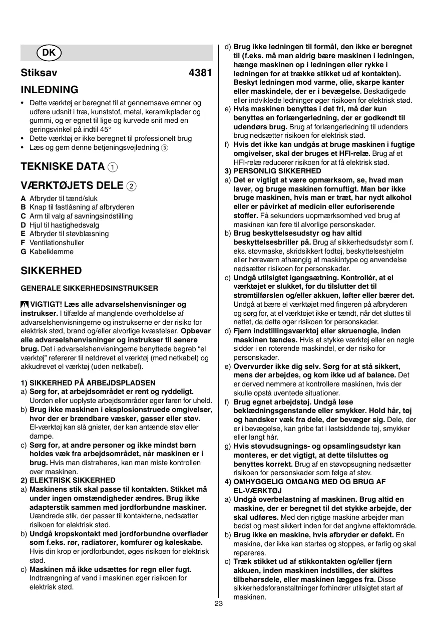 BRUGSANVISNING 4381 SKIL