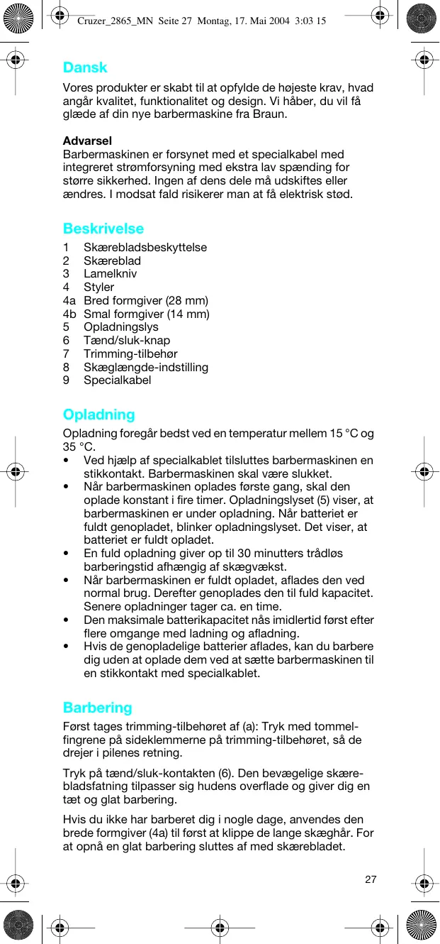 BRUGSANVISNING CRUZER3 2878 BRAUN