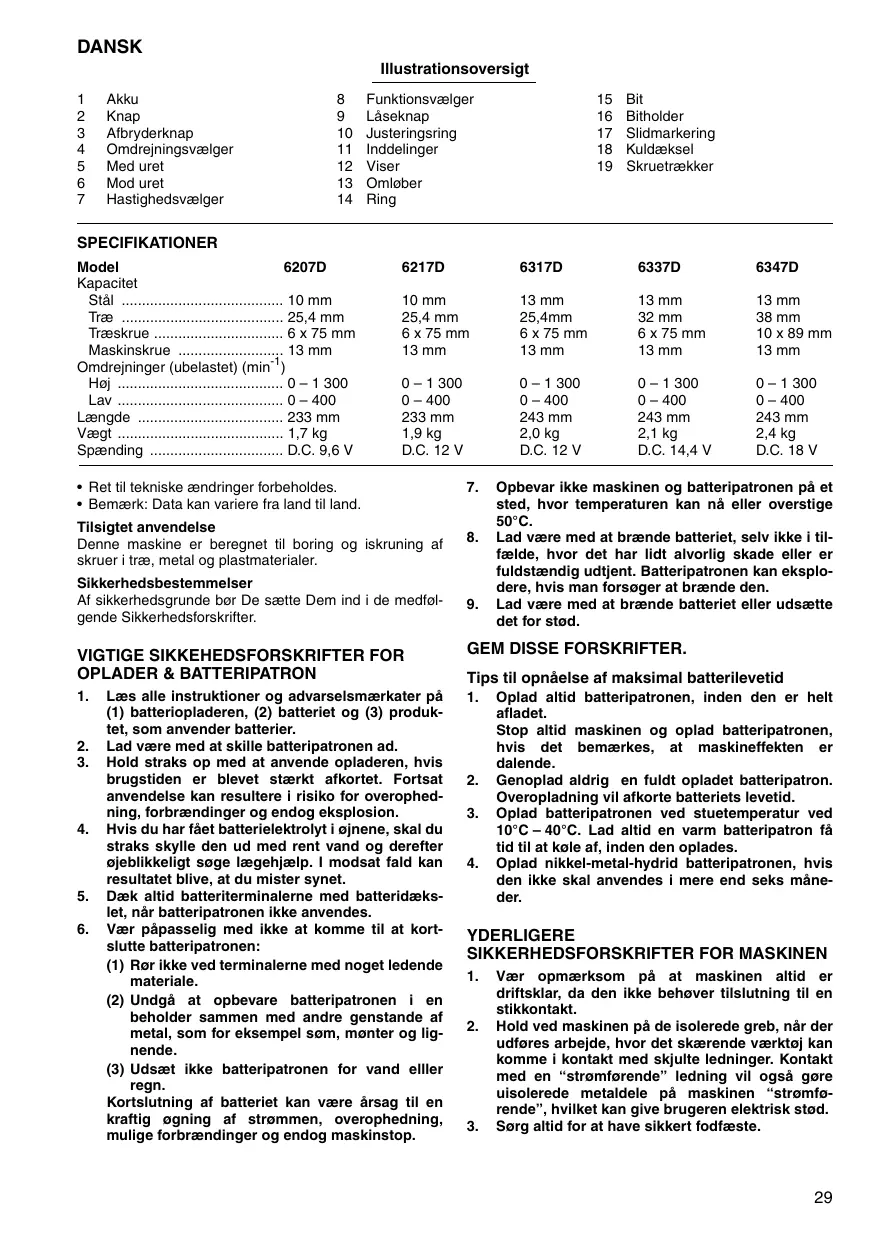 Tilsigtet anvendelse Denne maskine er beregnet til boring og iskruning af skruer i træ, metal og plastmaterialer.