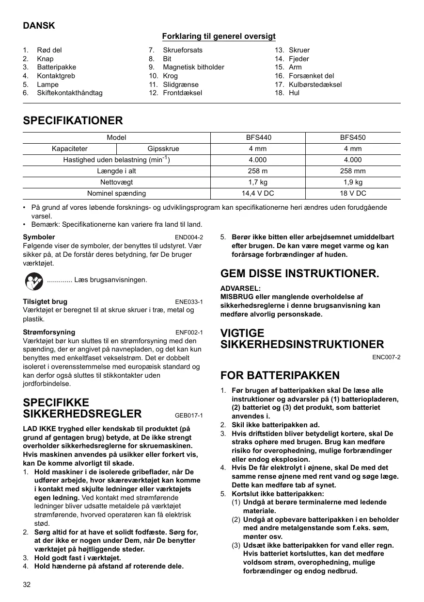 BRUGSANVISNING BFS440 MAKITA