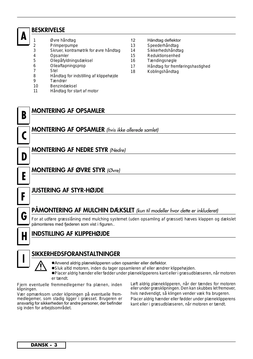 Deze handleiding is samengesteld voor het gebruik van verschillende modellen grasmaaimachines van verschillende afmetingen en met verschillende accessoires. Danger d’inhalation de gaz toxiques! Ne pas utiliser l’appareil dans des espaces fermés ou peu ventilés. Danger d’explosion! Ne pas faire le plein de carburant, moteur en marche. Attention! Surface chaude Attention! Eteindre le moteur et enlever la bougie avant d’effectuer quelque opération d’entretien que ce soit. Ecarter le câble d’alimentation de l’outil tranchant.