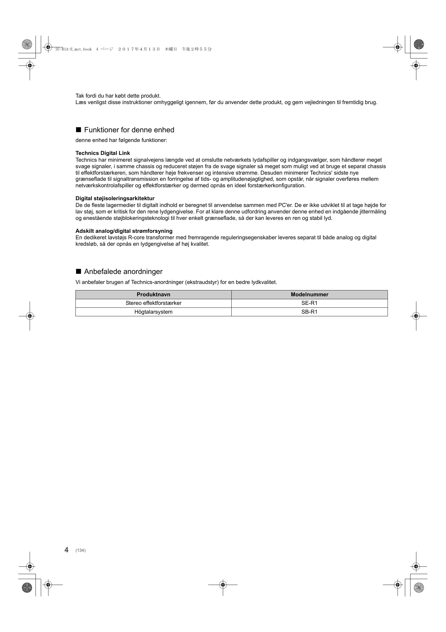 Vi anbefaler brugen af Technics-anordninger (ekstraudstyr) for en bedre lydkvalitet.