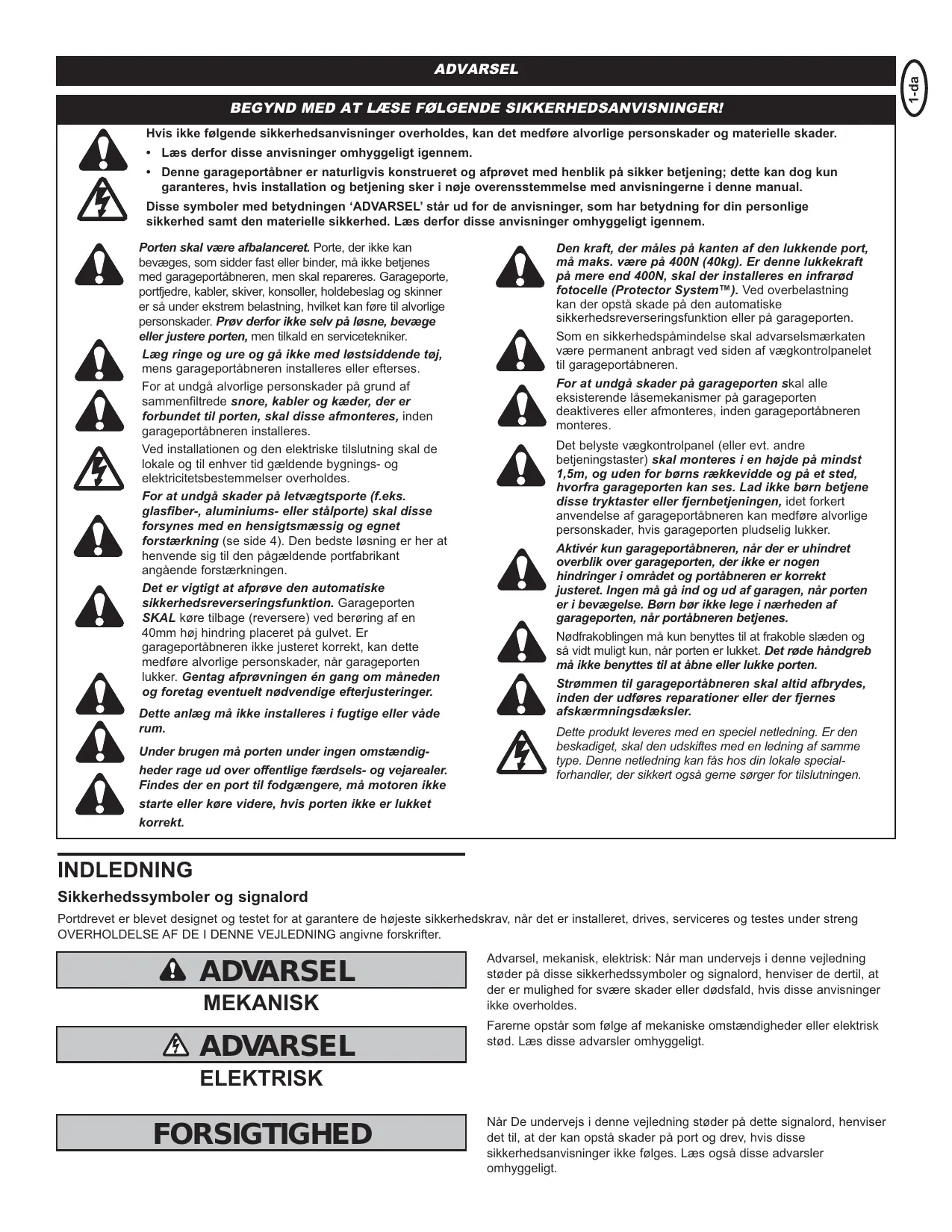ÉLECTRIQUE ATTENTION Si dans le cours de la notice vous rencontrez le mot-clé suivant, il vous indique le risque de dommages à la porte ou au système d’entraînement si les instructions y afférentes ne sont pas respectées. Lisez également ces instructions.