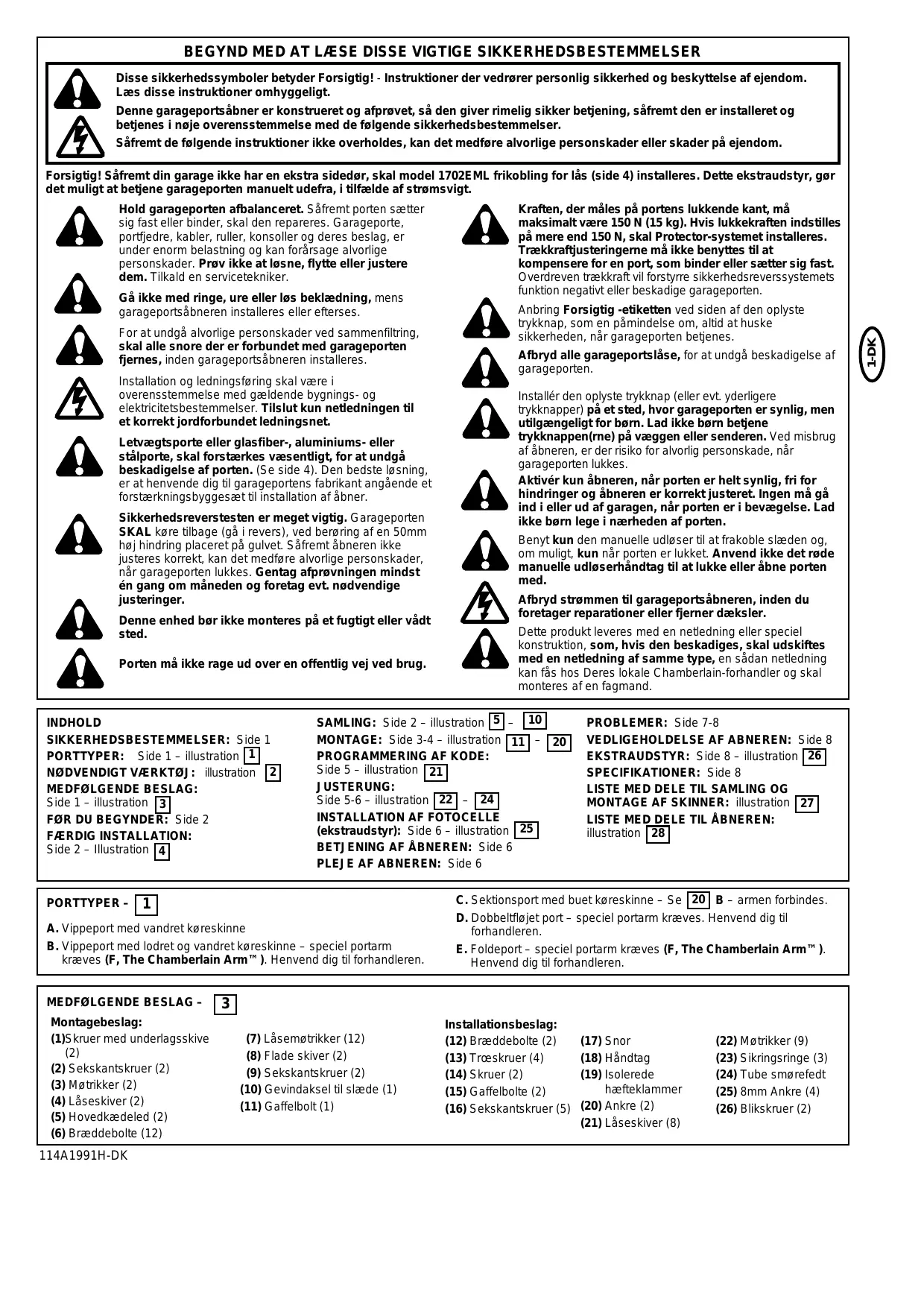 Téléchargez la notice de votre Garageåbningssystem au format PDF gratuitement ! Retrouvez votre notice MOTORLIFT 4000 - CHAMBERLAIN et reprennez votre appareil électronique en main. Sur cette page sont publiés tous les documents nécessaires à l'utilisation de votre appareil MOTORLIFT 4000 de la marque CHAMBERLAIN.