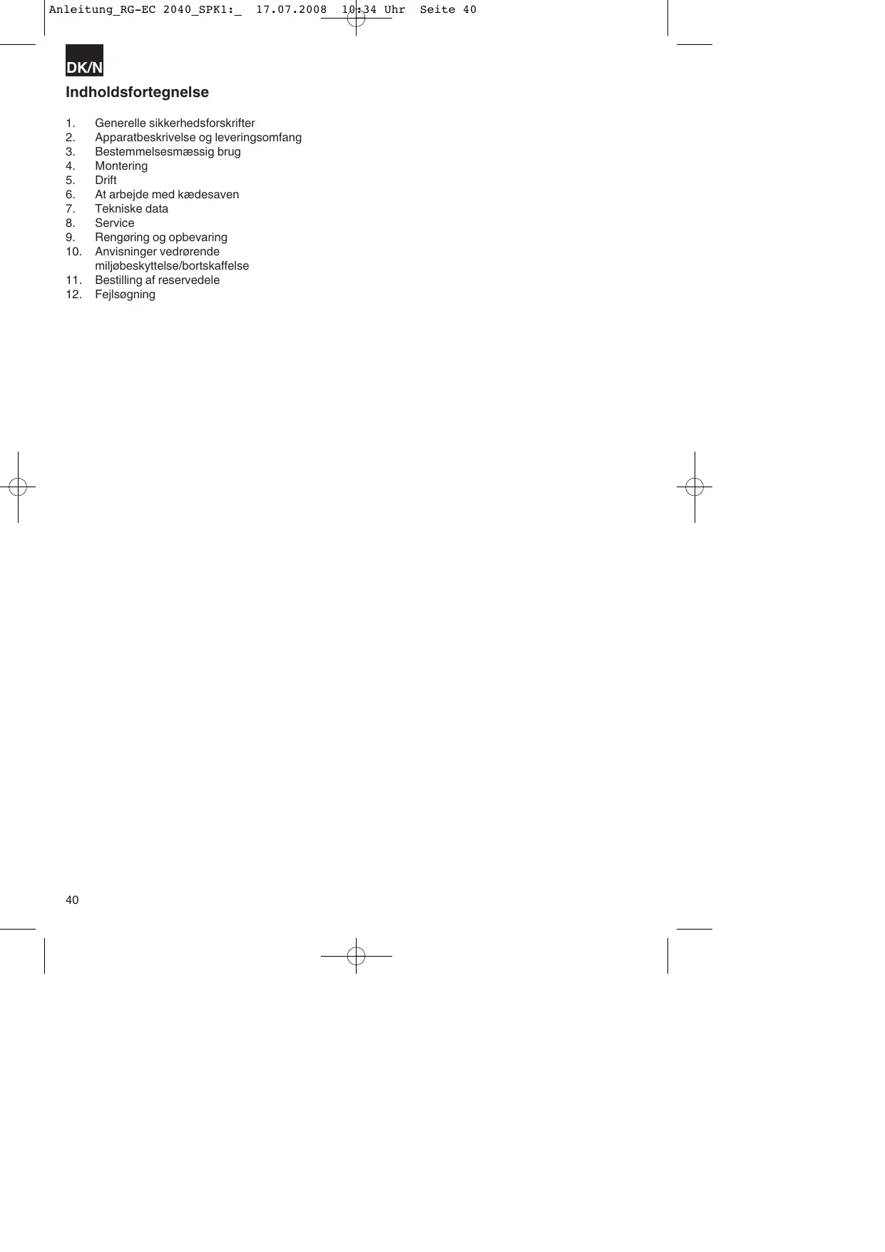 BRUGSANVISNING RG EC 2040 EINHELL