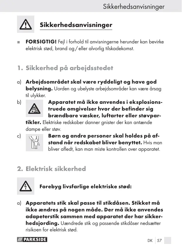 56 Dk MA PARKSIDE Sikkerhedsanvisninger