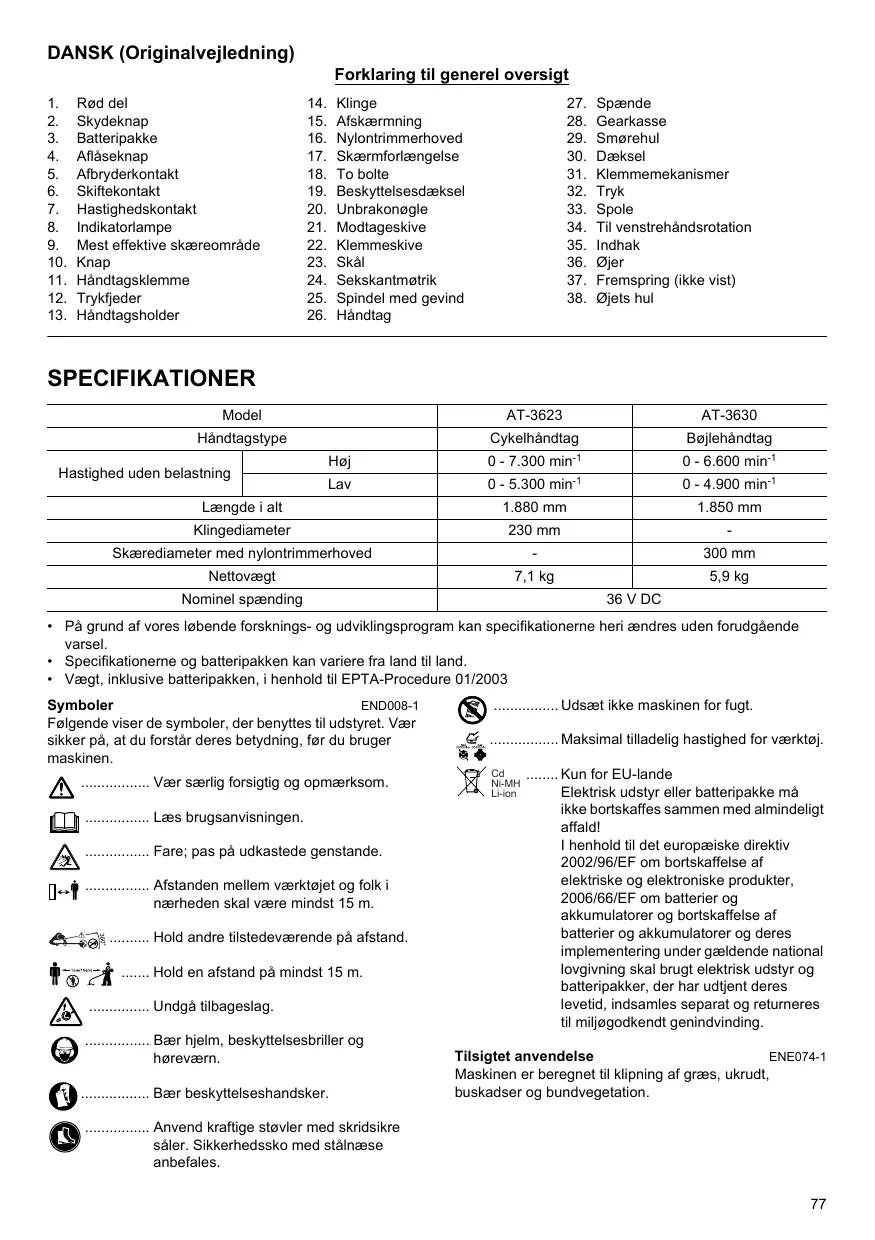 BRUGSANVISNING AT-3623 DOLMAR