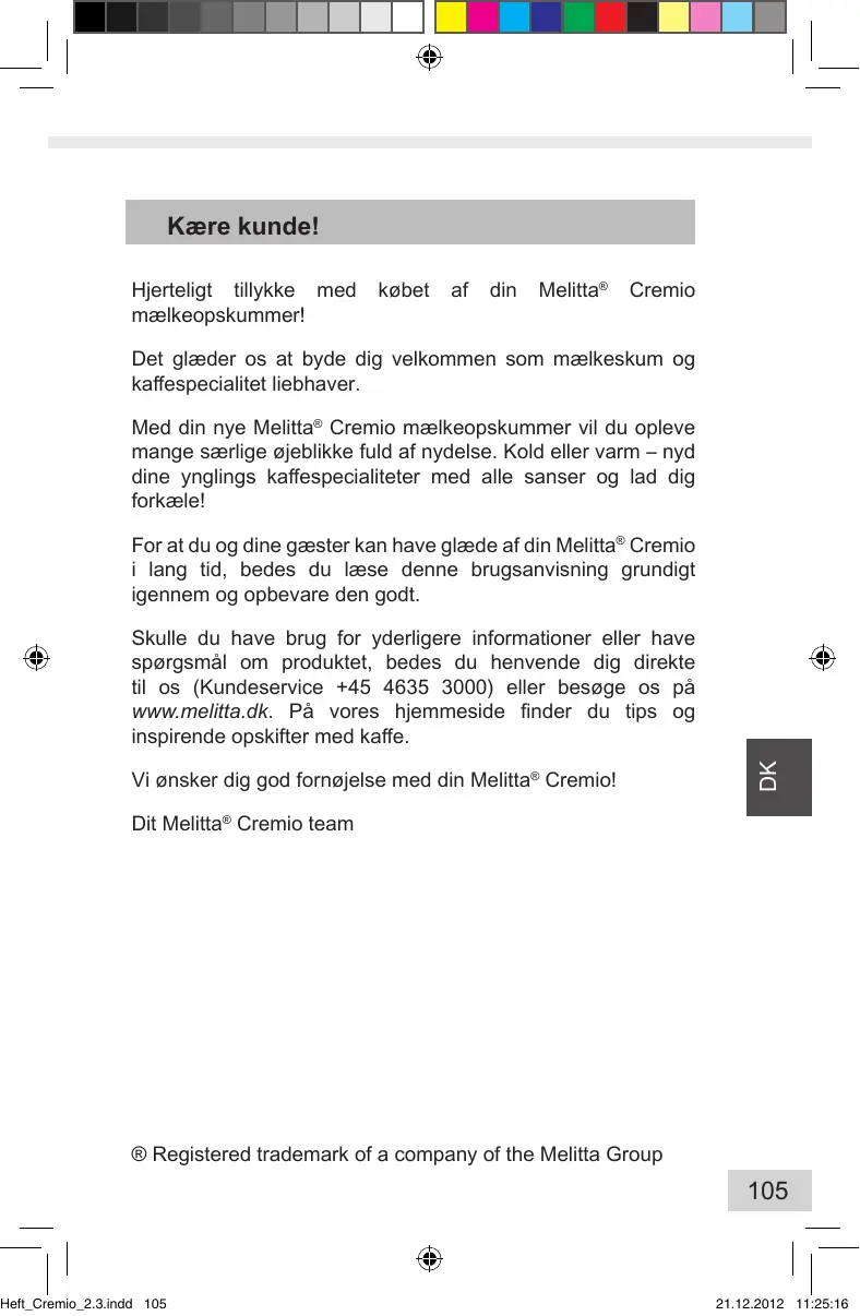BRUGSANVISNING CREMIO MELITTA