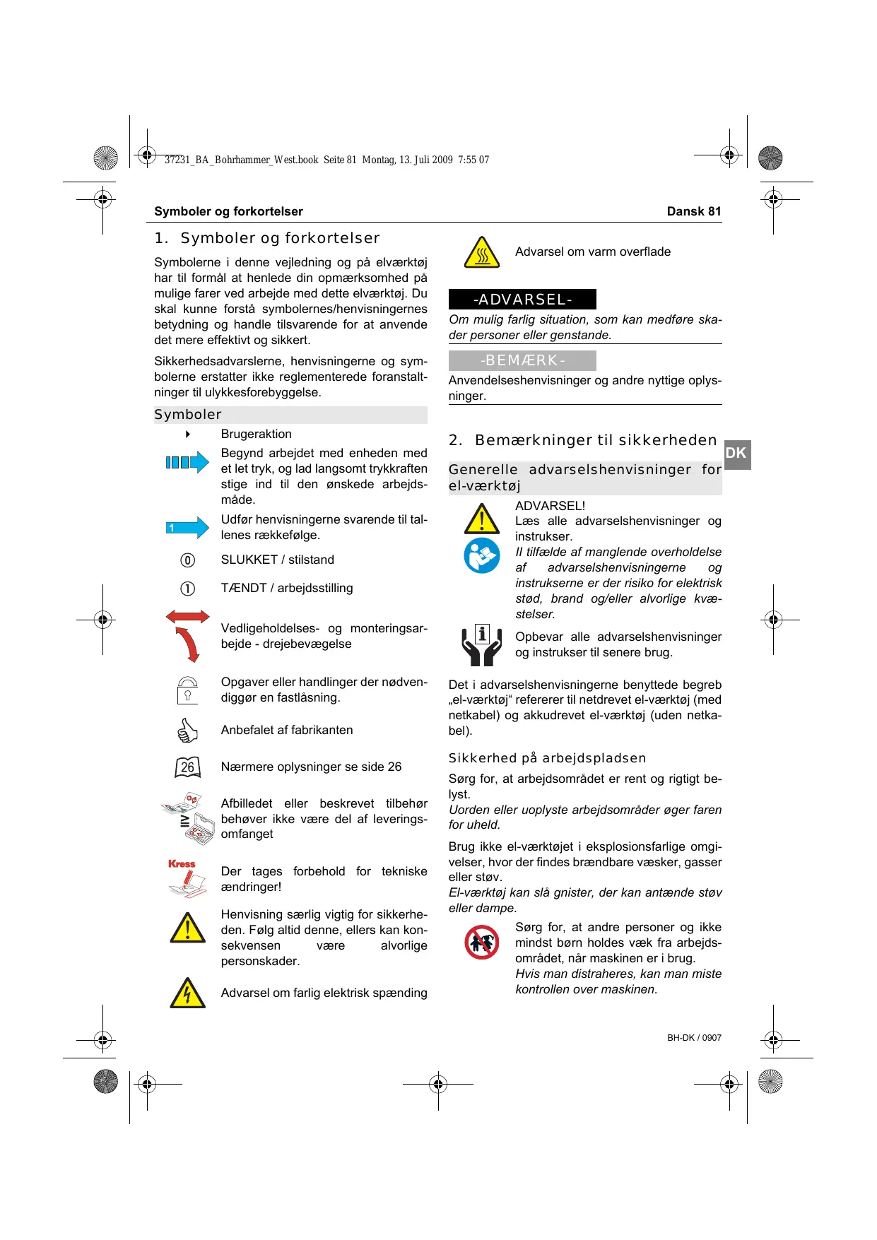 37231_BA_Bohrhammer_West.book Seite 91 Montag, 13. Juli 2009 7:55 07 Original driftsinstruks "Borhammer“ Symboler og forkortelser