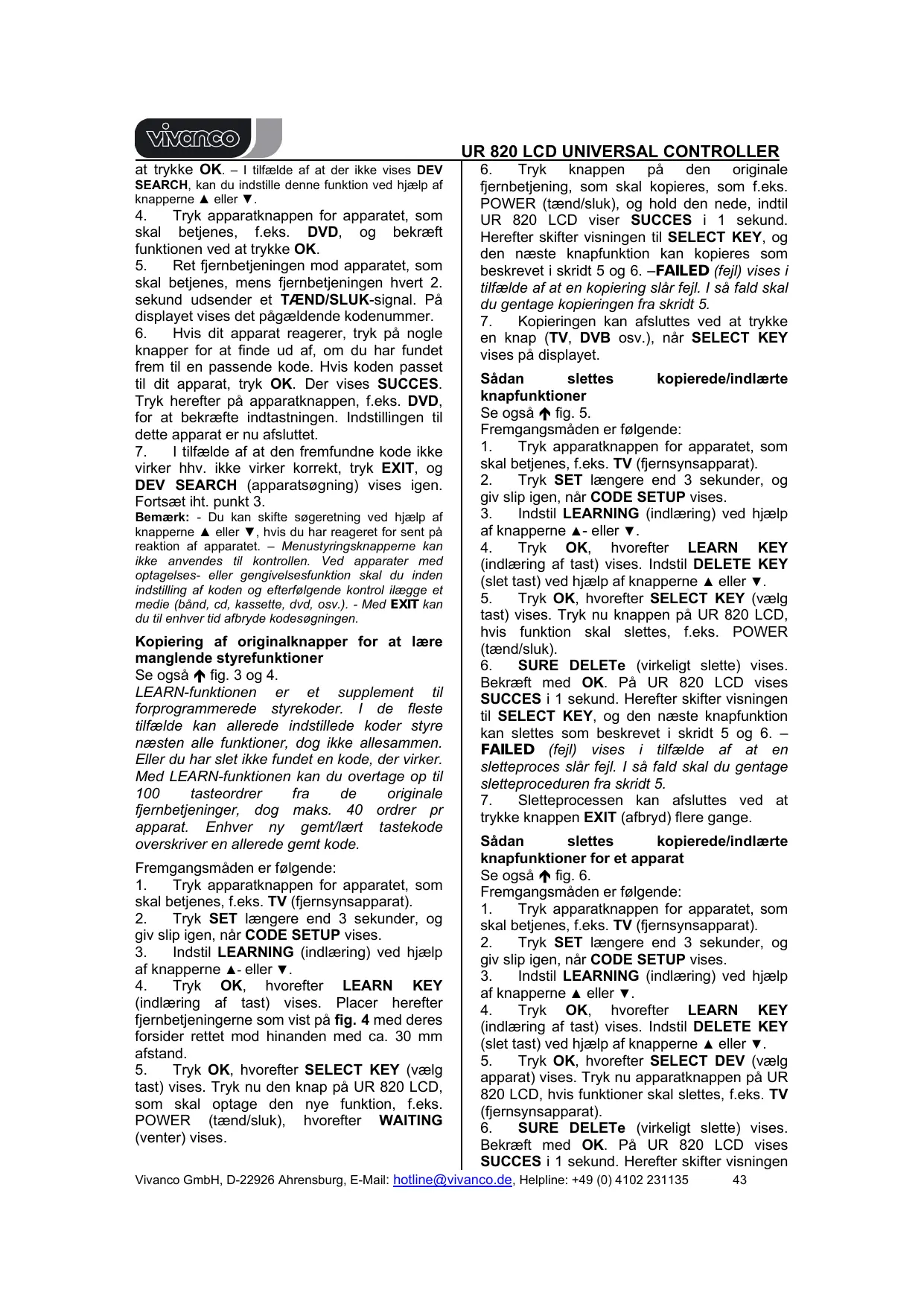 BRUGSANVISNING UNIVERSAL CONTROLLER UR 820 LCD VIVANCO