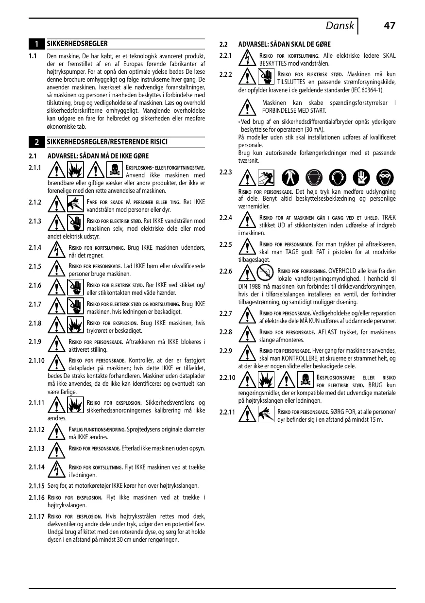 2.1.16 Danger d’explosion. Ne déplacez pas l’appareil en tirant le tuyau haute pression.