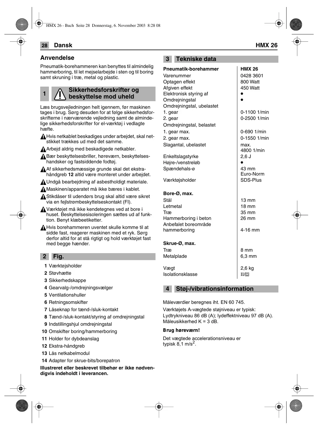 30, Dansk HMX 26 - Buch Seite 30 Donnerstag, 6. November 2003 8:28 08 HMX 26 Vær opmærksom pà, at stovhætten 2 ikke beskadi- ges. En beskadiget stovhætte skal ubetinget udskiftes!