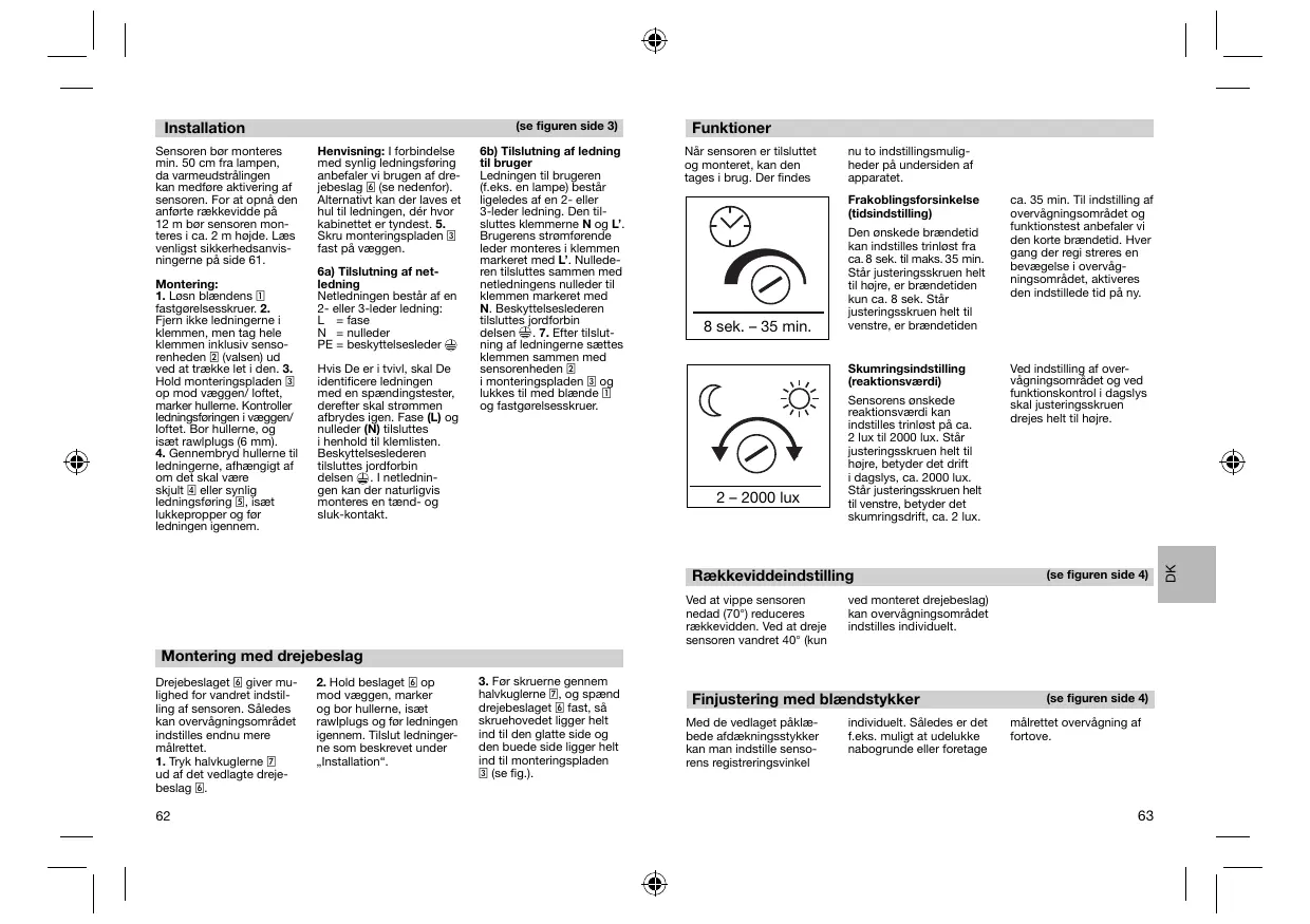 Fonctionnement crépusculai- 18, soit env. 2 lux. Lors du ré- glage de la zone de détection t du test de fonctionnement en plein jour 1 faut metre la vs de réglage en butée à droite