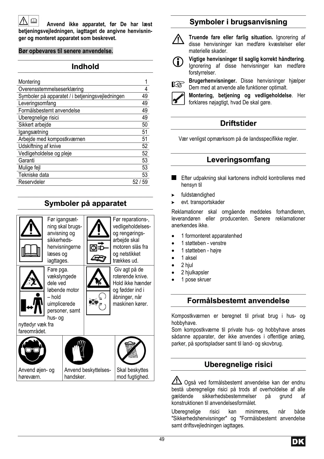| Symboler på apparatet / i betjeningsvejledningen | 49 |