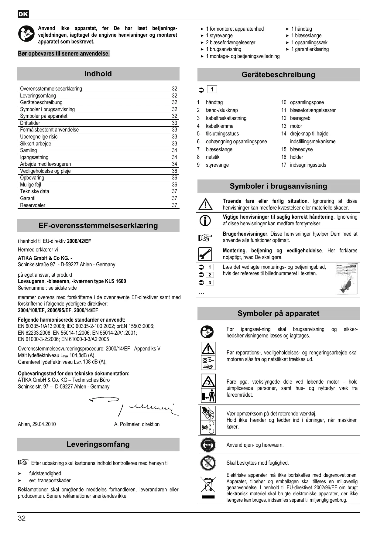 KLS 1600 - ATIKA - Gratis brugsanvisning og manual