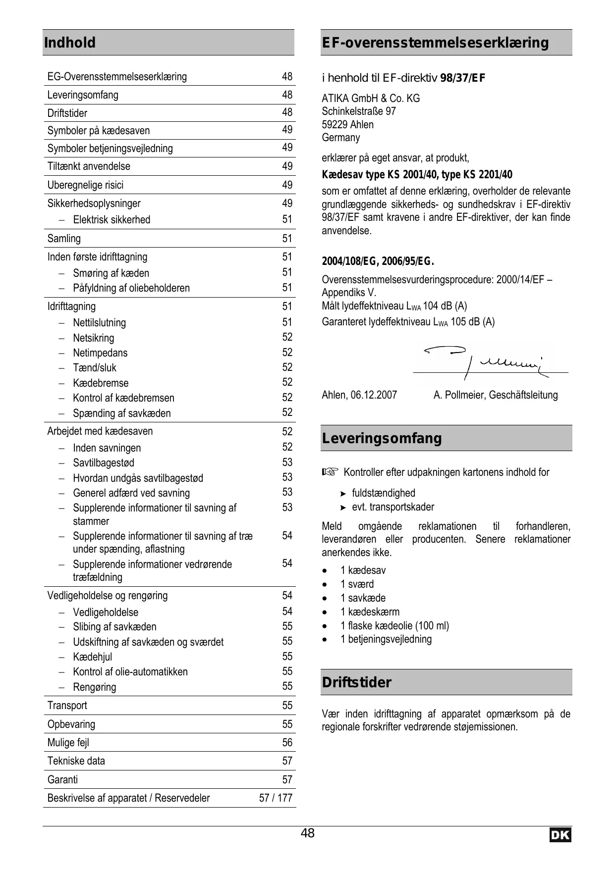 Find enhedens vejledning gratis KS 2001 ATIKA i PDF-format.