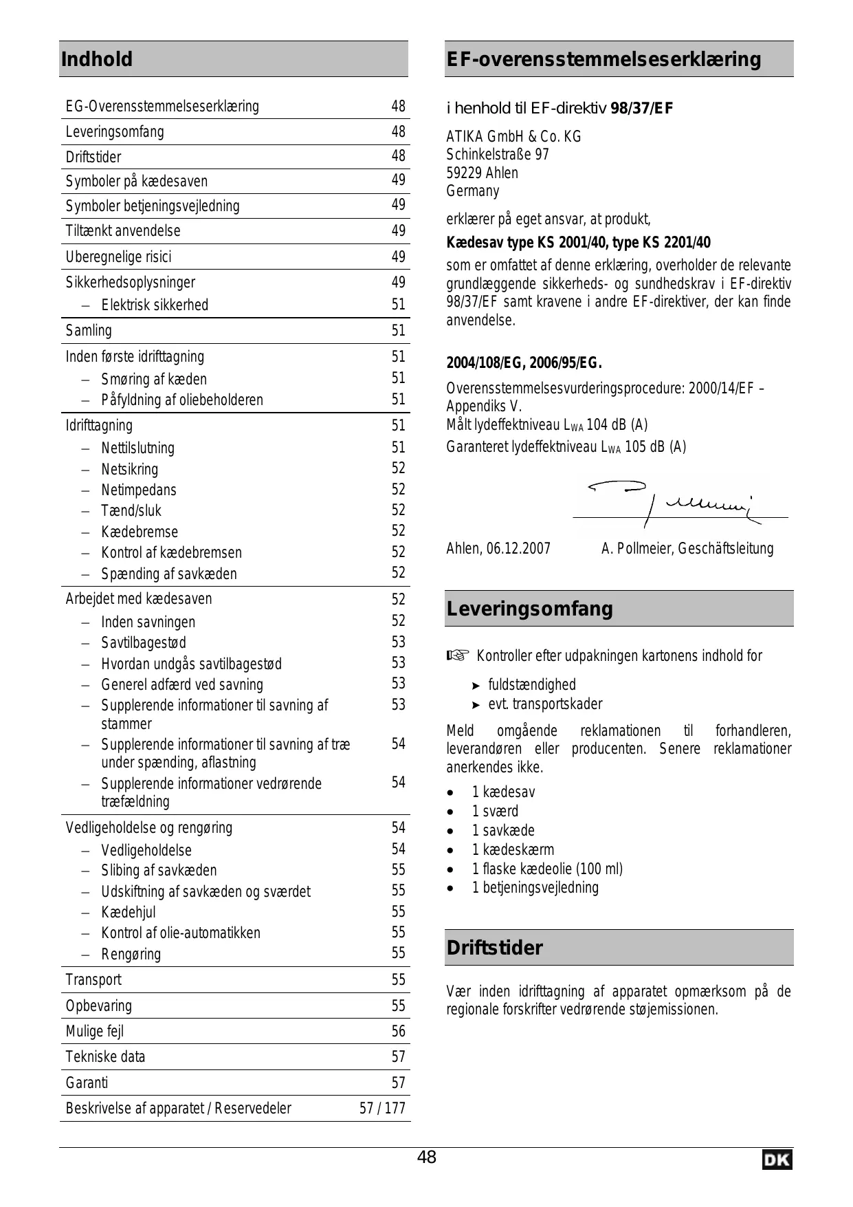 Find enhedens vejledning gratis KS 2001-40 ATIKA i PDF-format.
