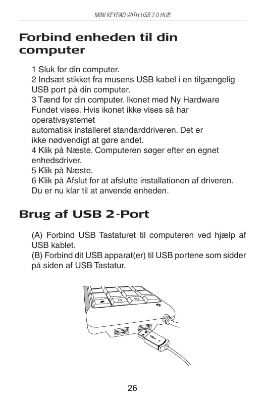 (A) Connectez le Pavé numérique USB à l’ordinateur n utilisant le câble USB fourni. (B) Connectez votre (vos) appareil(s) USB device(s) aux ports USB situés sur le côté du Pavé numérique USB.