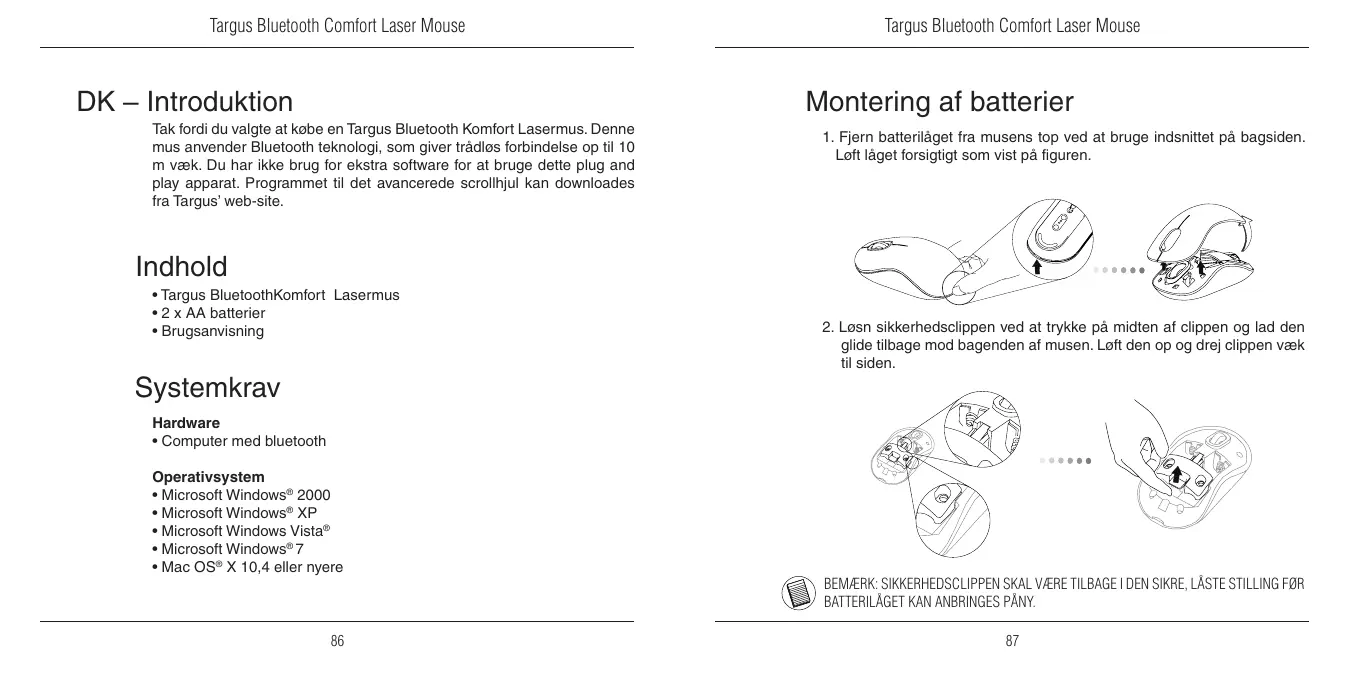 • Souris Laser Bluetooth confort de Targus • 2 x piles AA • Manuel d’utilisateur