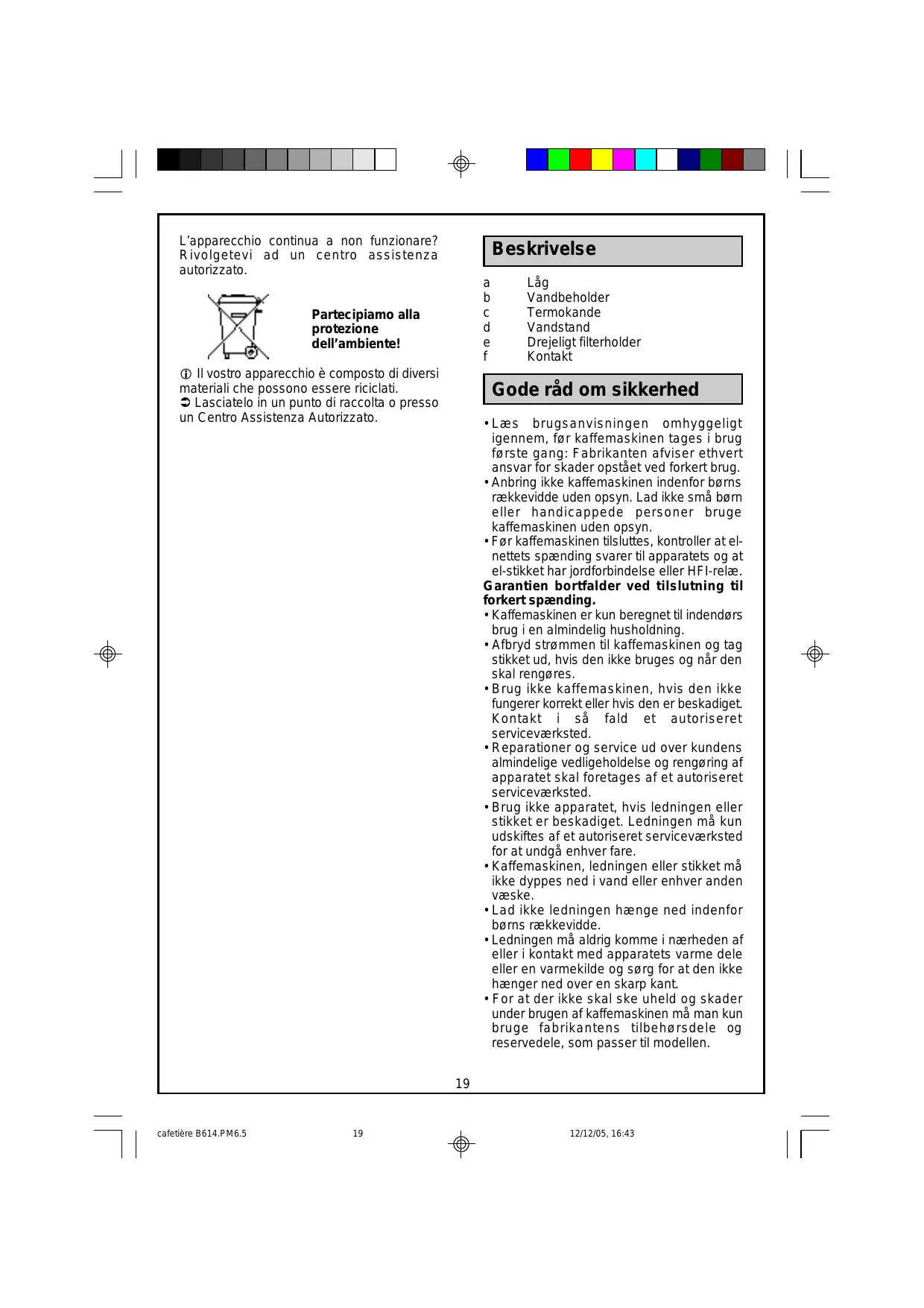 - Anbring/DDkFFemaskinen indenfor borns rækkevidde uden opsyn. Lad icke sma born ellher handicappede personer bruge kaffemaskinen uden opsyn.