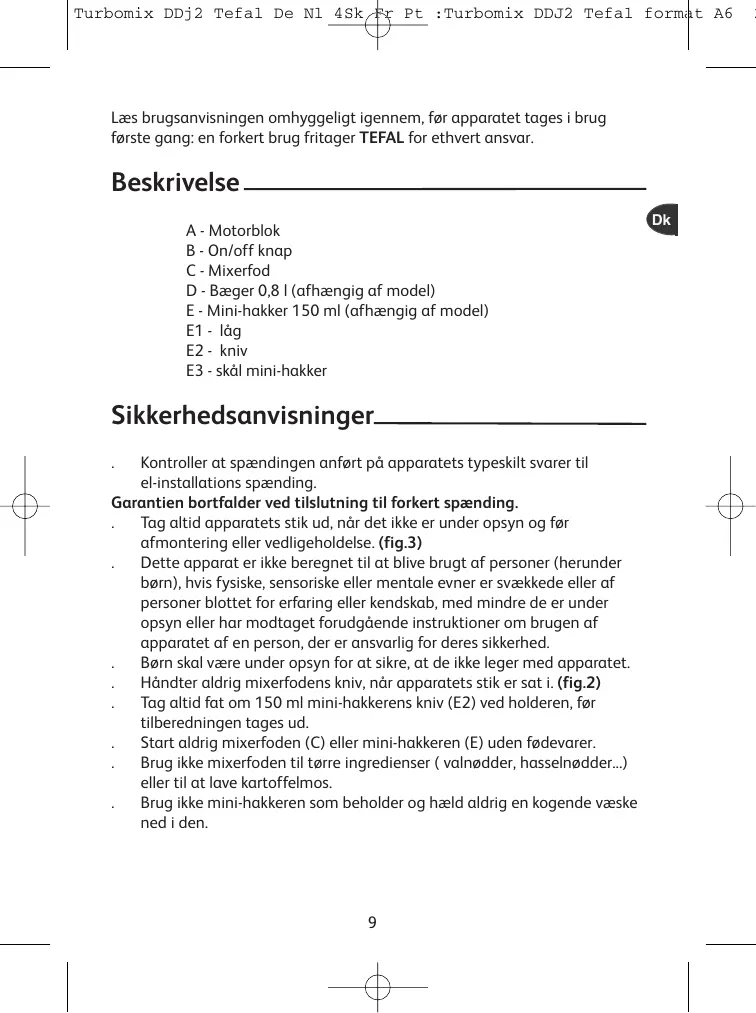 Læs brugsanvisingen omhyggeligt igennem, før apparatet tages i drug første gang: en forkert brug fritager TEFAL for ethvert ansvar.