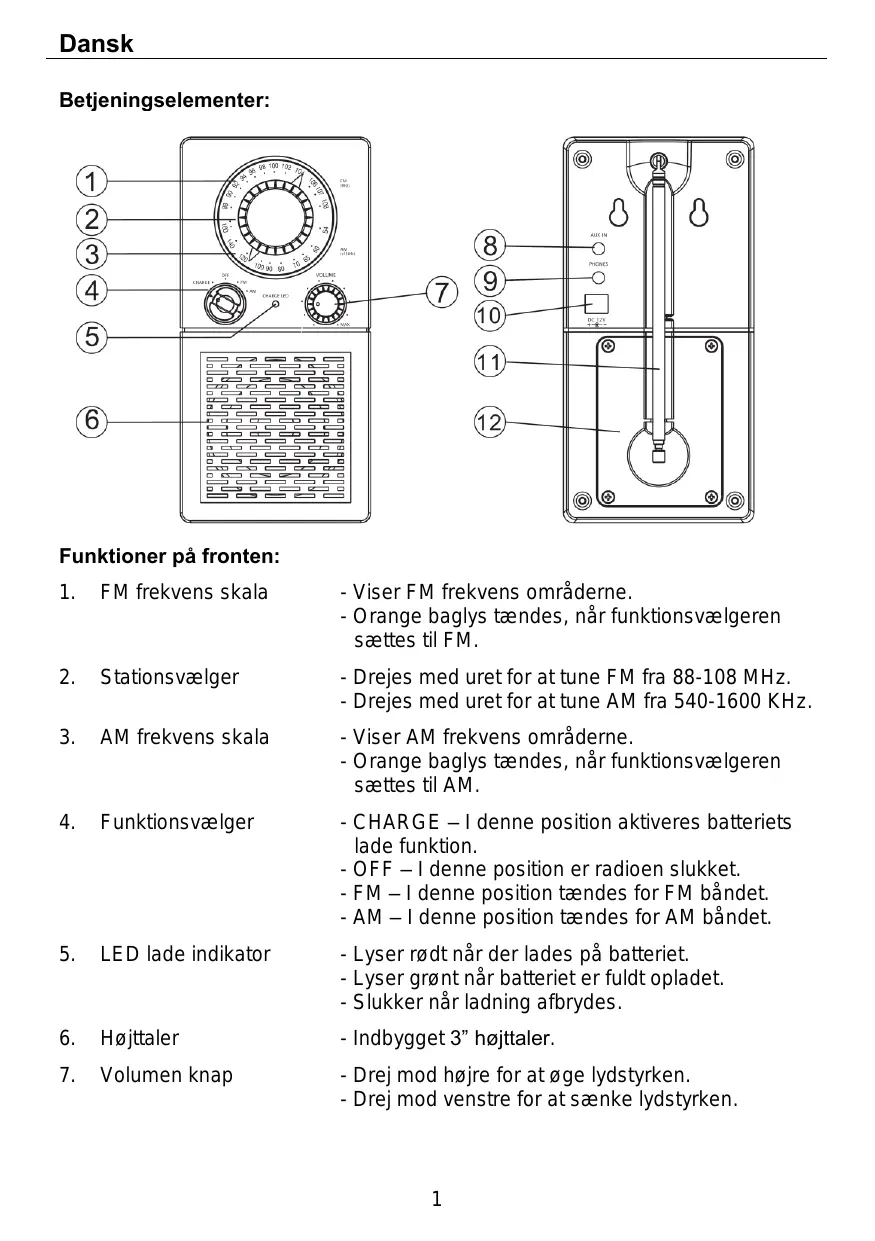 - Bemærk at radio modtagelsen bliver svagere eller lyden kan forvrænges,ningar batteriet trænger til opladning.