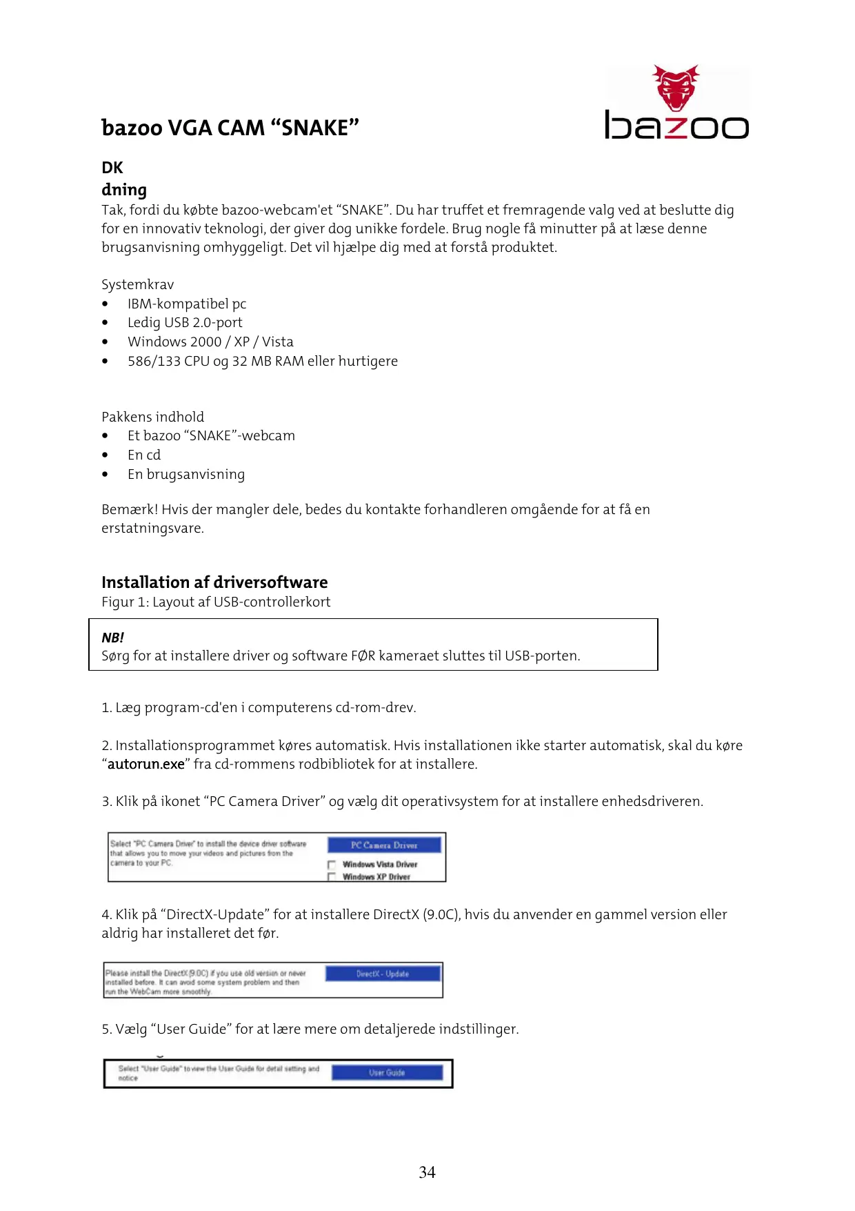 Tak, fordu kobe bazoo-webcam'et "SNAKE". Du har truffet et fremragende valg ved at beslutte dig for en innovativ tekologi, der giver dogunikke fordele. Brug nogle fag minutter paa at lese denne brugsanvising omhyggeligt. Det vil hjelsep dig med at forsta Produktet.