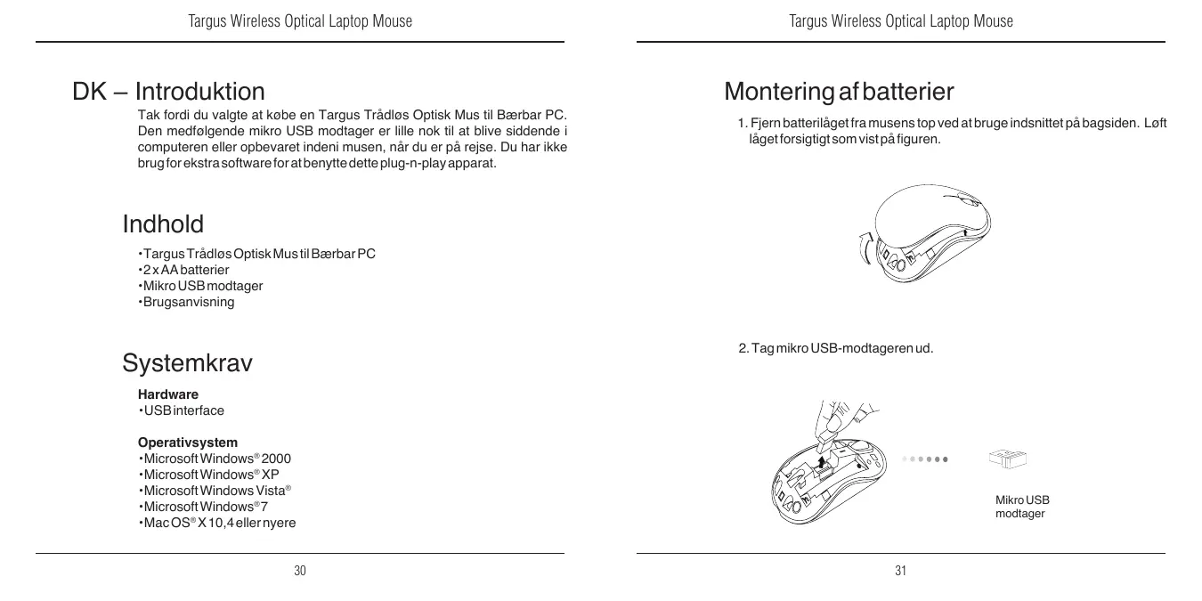 BRUGSANVISNING WIRELESS OPTICAL LAPTOP MOUSE TARGUS