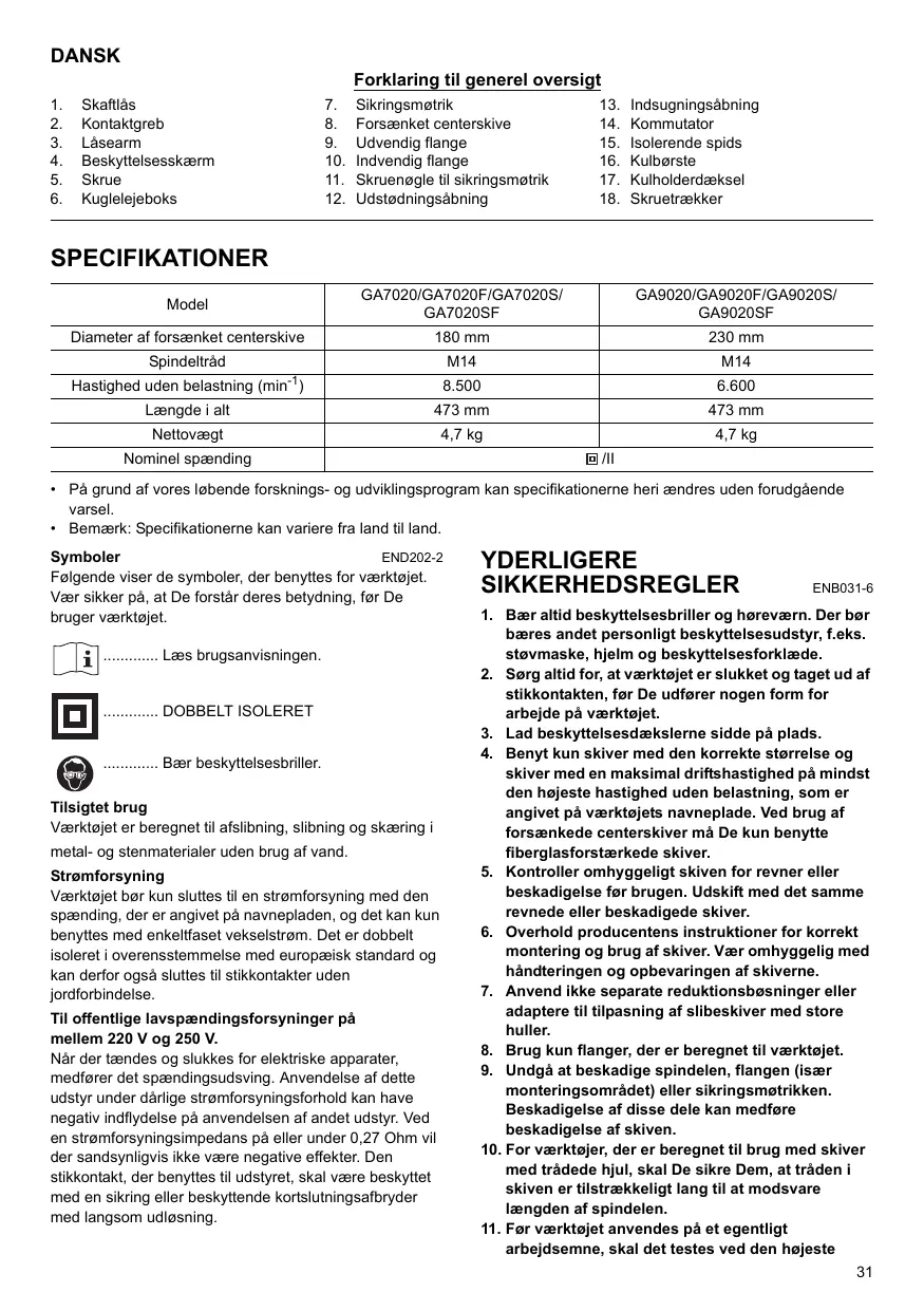 BRUGSANVISNING GA 9020 K MAKITA