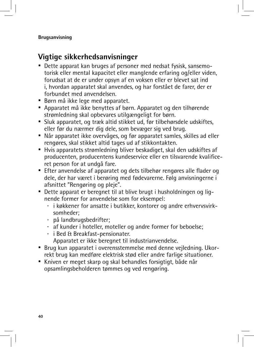 ▪▪ No asumiremos ninguna responsabilidad por posibles daños en caso de un uso diferente al previsto, un manejo incorrecto o una reparación que no haya sido realizada por profesionales. En esos casos están excluidas también las prestaciones de garantía. ▪▪ El aparato no se ha diseñado para el uso comercial. ▪▪ El suplemento de pincho del alimentador es afilado: ¡riesgo de lesiones!