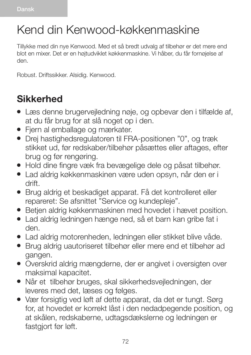 Téléchargez la notice de votre Køkkenmaskine au format PDF gratuitement ! Retrouvez votre notice FDM786 - KENWOOD et reprennez votre appareil électronique en main. Sur cette page sont publiés tous les documents nécessaires à l'utilisation de votre appareil FDM786 de la marque KENWOOD.
