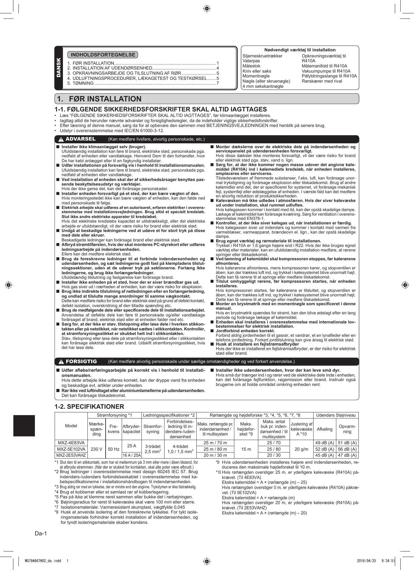 BRUGSANVISNING MSZ-HJ35VA MITSUBISHI