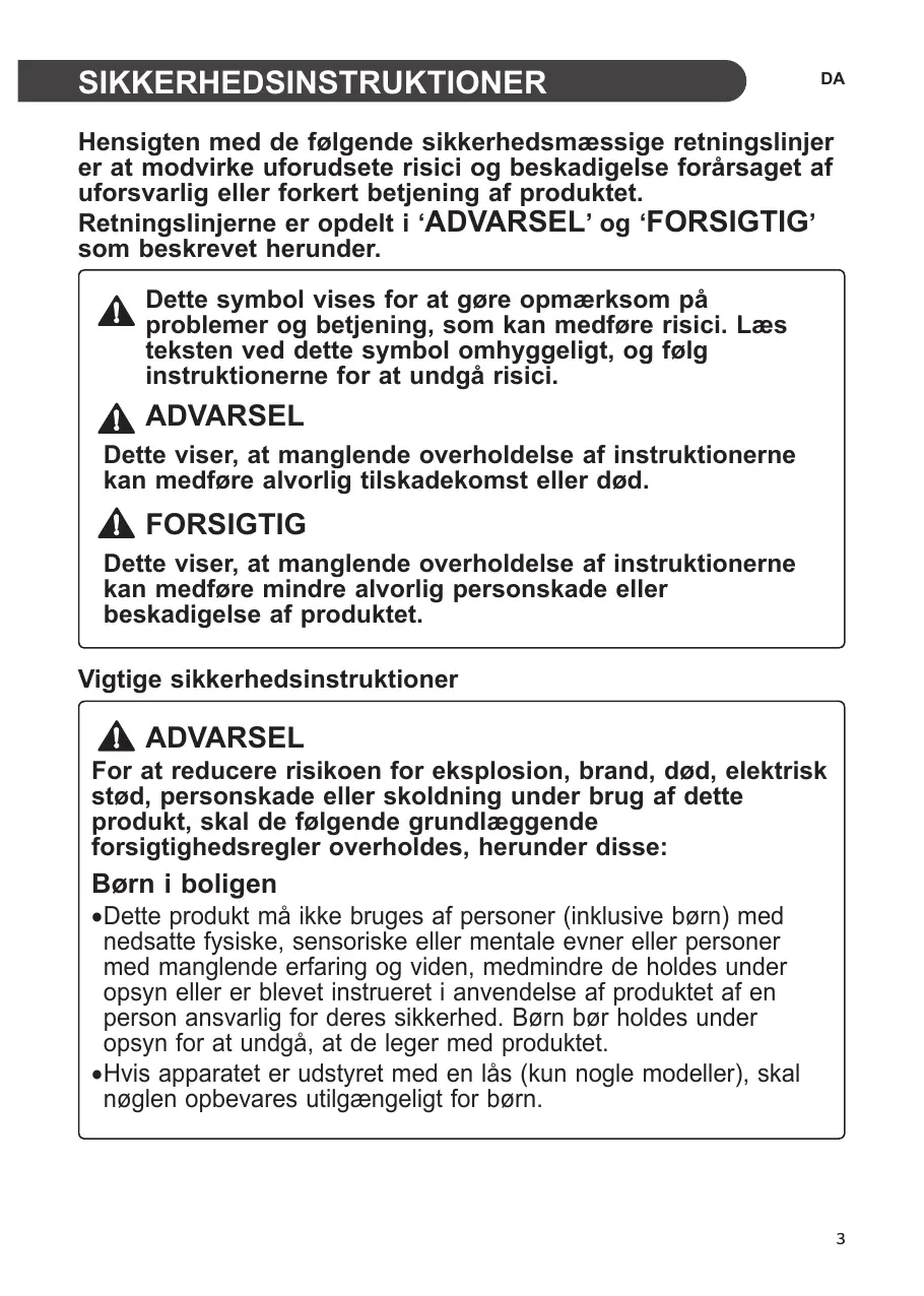 CONSIGNES IMPORTANTES RELATIVES A LA SECURITE 3