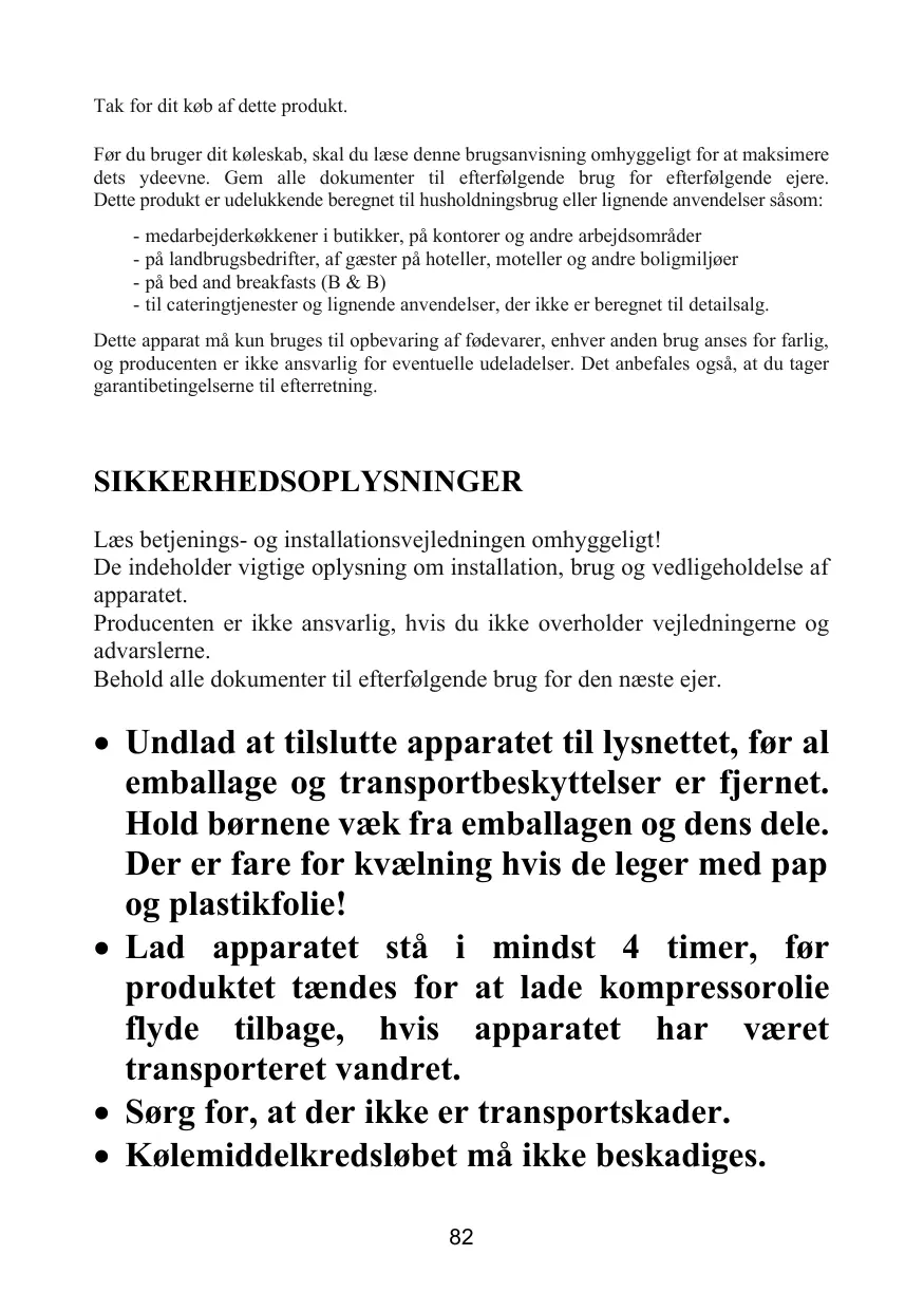 - dans les exploitations agricoles, pour la clientèle des hôtels, motels et autres environnements de type résidentiel - dans les hébergements Bed and Breakfast (B & B) - pour les services de restauration et des applications similaires non destinées à une vente au détail. Cet appareil doit être utilisé uniquement à des fins de conservation d'aliments, toute autre utilisation est considérée comme dangereuse et le fabricant ne sera pas responsable de toute omission. De plus, il est recommandé de prendre note des conditions de garantie.