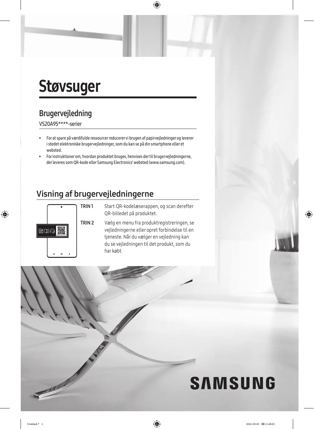 BRUGSANVISNING VS20A95973B/WA - VS20A95943N/WA - VS20A95973B/WA - VS20A95823W/WA - VS20A95843W/WA - VS20A95843B/WA SAMSUNG