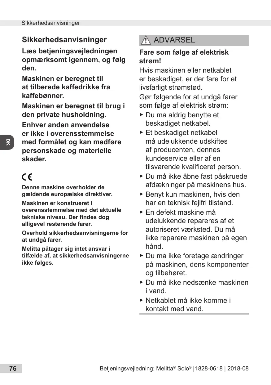 Manual de instrucciones: Melitta® Solo® | 1828-0618 | 2018-08