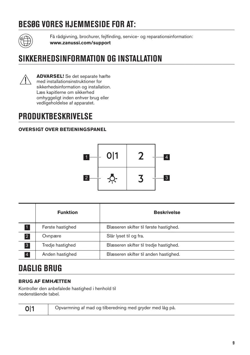 BRUGSANVISNING ZFP416X ZANUSSI