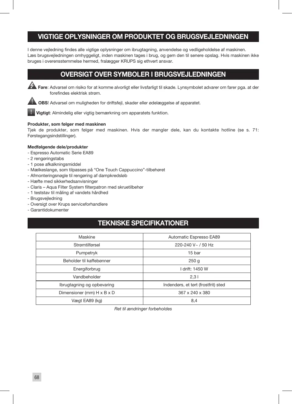 Téléchargez la notice de votre Kaffemaskine au format PDF gratuitement ! Retrouvez votre notice EVIDENCE EA8918 - KRUPS et reprennez votre appareil électronique en main. Sur cette page sont publiés tous les documents nécessaires à l'utilisation de votre appareil EVIDENCE EA8918 de la marque KRUPS.