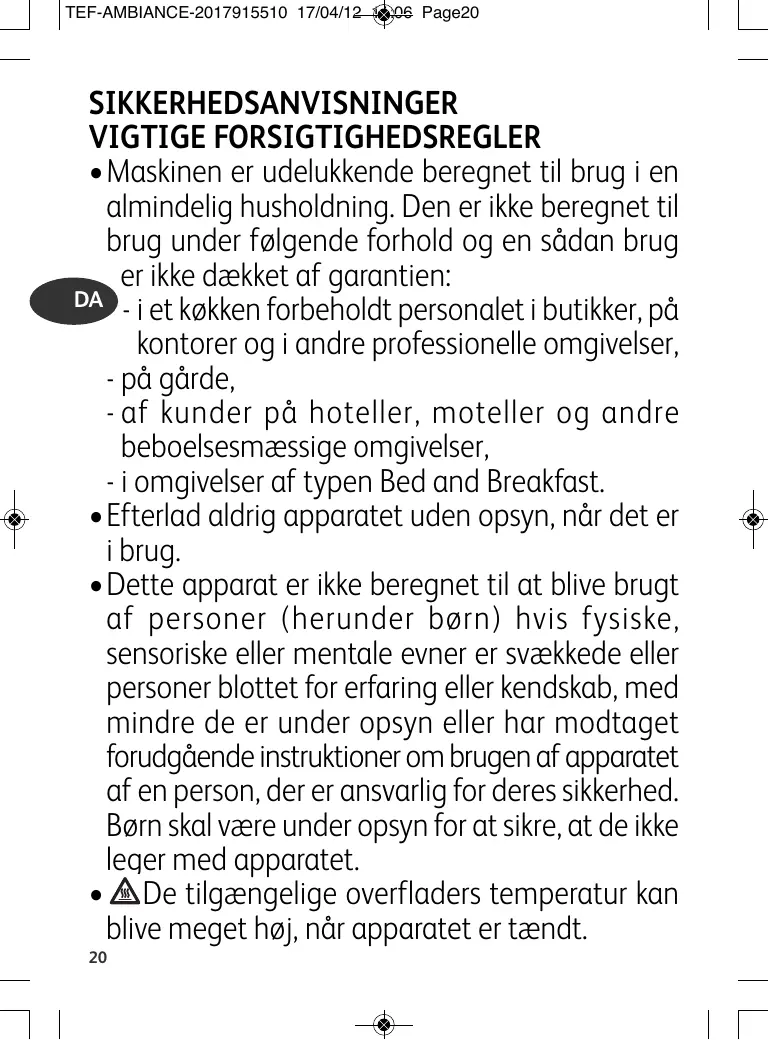 BRUGSANVISNING RE522612 TEFAL
