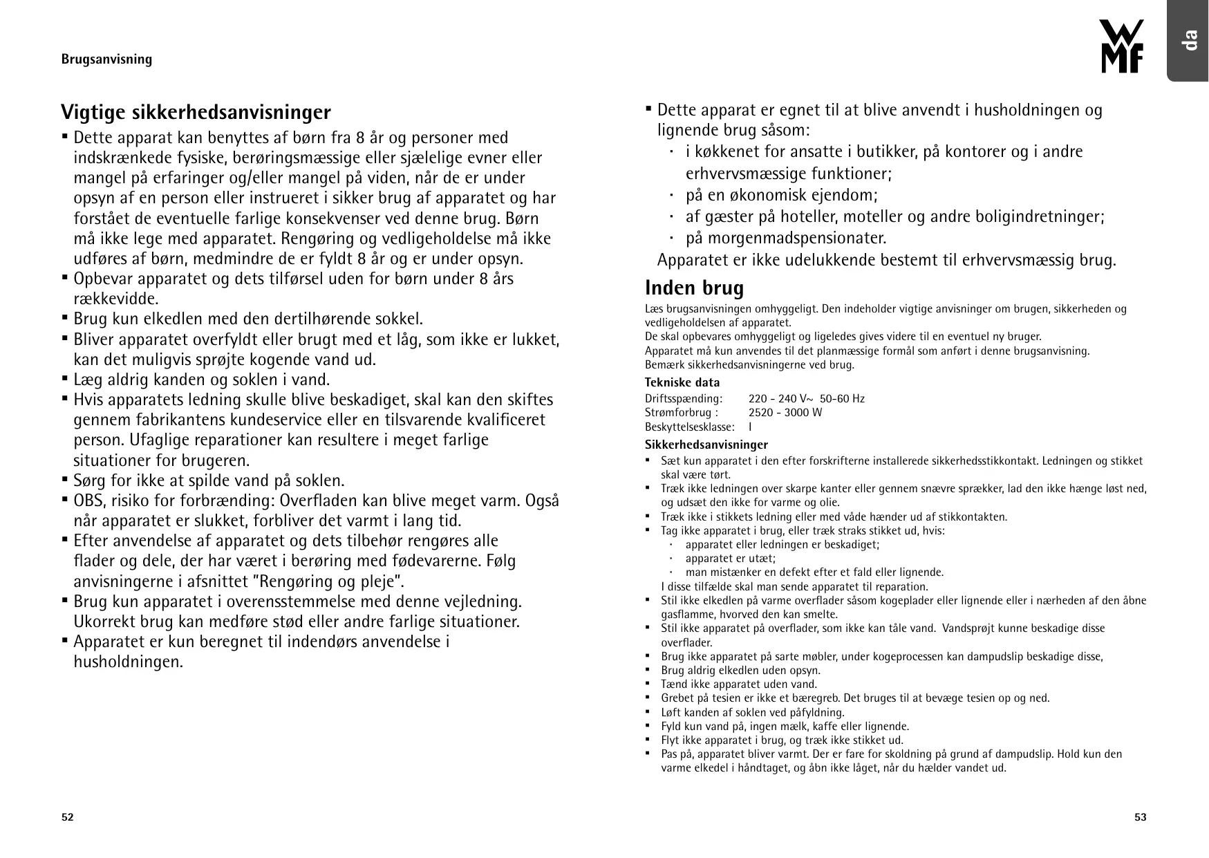 BRUGSANVISNING LONO WMF