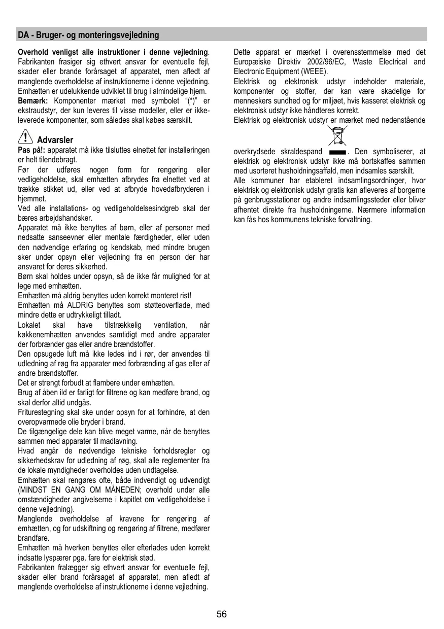 Montagevoorschriften en gebruiksaanwijzingen Istruzioni di montaggio e d'uso Montaje y modo de empleo Instruções para montagem e utilização ΟΔΗΓΙΕΣ ΣΥΝΑΡΜΟΛΟΓΗΣΗΣ ΚΑΙ ΧΡΗΣΗΣ La non observation de ces normes de nettoyage de la hotte et du changement et nettoyage des filtres comporte des risques d’incendie. Ne pas utiliser ou laisser la hotte sans que les ampoules soient correctement placées pour éviter tout risque de choc électrique. La société décline toute responsabilité pour d’éventuels inconvénients, dégâts ou incendies provoqués par l’appareil et dérivés de la non observation des instructions reprises dans ce manuel. Cet appareil porte le symbole du recyclage conformément à la Directive Européenne 2002/96/CE concernant les Déchets d’Équipements Électriques et Électroniques (DEEE ou WEEE). En procédant correctement à la mise au rebut de cet appareil, vous contribuerez à empêcher toute conséquence nuisible pour l’environnement et la santé de l’homme.