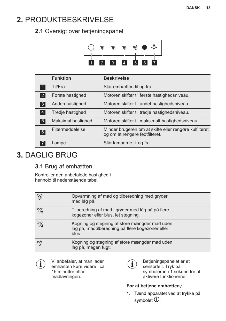 1 seconde pour activer les fonctions. Pour utiliser la hotte :