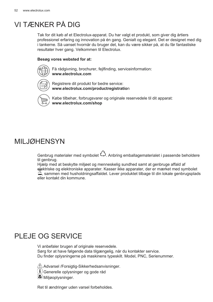 Avant de contacter le service, assurez-vous de disposer des informations suivantes : Vous trouverez ces informations sur la plaque signalétique. Modèle, PNC, numéro de série. Avertissement/Attention : consignes de sécurité. Informations générales et conseils. Informations en matière de protection de l’environnement. Sous réserve de modifications.