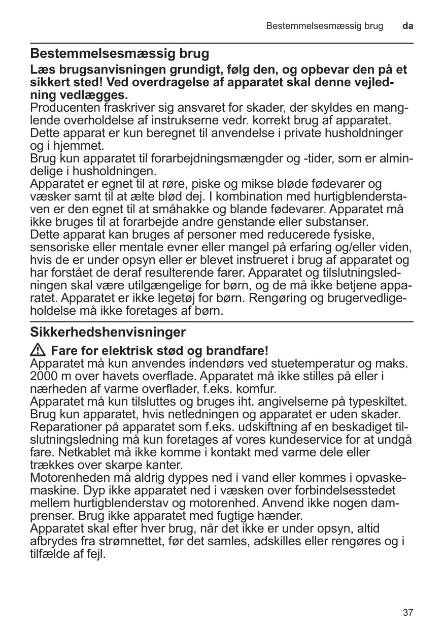 Die Gebrauchsanleitung sorgfältig durchlesen, danach handeln und aufbewahren! Bei Weitergabe des Geräts diese Anleitung beilegen. Schieber zum Betätigen des Für dieses Gerät gelten die von unserer jeweils zuständigen Landesvertretung herausgegebenen Garantiebedingungen des Landes, in dem das Gerät gekauft wurde. Sie können die Garantiebedingungen jederzeit über Ihren Fachhändler, bei dem Sie das Gerät gekauft haben, oder direkt bei unserer Landesvertretung anfordern. Die Garantiebedingungen für This instruction manual refers to various models. An overview of the different models can be found on the illustrated pages Cet appareil est destiné exclusivement à une utilisation domestique et non professionnelle. Utiliser cet appareil uniquement pour des quantités de préparations culinaires courantes et pour des durées de service normales. L’appareil est conçu pour mélanger, battre et mixer des aliments tendres et des liquides ainsi que pour pétrir des pâtes molles. Muni du pied mixeur rapide, il convient pour broyer et mélanger des produits alimentaires. L’appareil ne doit pas servir à transformer d’autres substances ou objets. Cet appareil peut être utilisé par des personnes aux capacités physiques, sensorielles ou mentales réduites ou des personnes inexpérimentées, à condition qu’elles soient surveillées ou qu’elles aient été informées de l’utilisation de l’appareil et qu’elles comprennent les risques inhérents à son usage. Il faut tenir les enfants à l’écart de l’appareil et du cordon de branchement et ne pas leur permettre d’utiliser l’appareil. Ne pas laisser les enfants jouer avec l’appareil. Le nettoyage et l’entretien incombant à l’utilisateur ne doivent pas être effectués par des enfants.