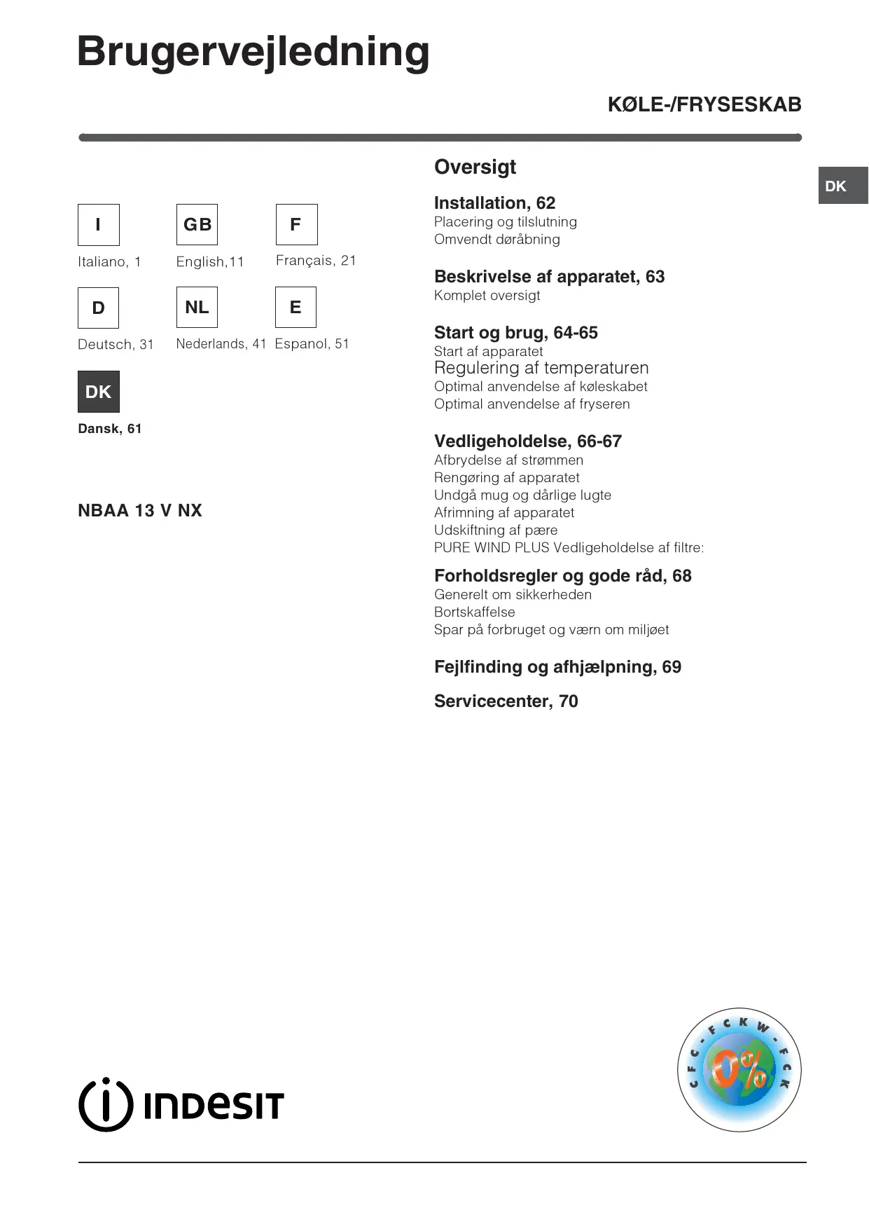 Téléchargez la notice de votre Køleskab au format PDF gratuitement ! Retrouvez votre notice NBAA13V - INDESIT et reprennez votre appareil électronique en main. Sur cette page sont publiés tous les documents nécessaires à l'utilisation de votre appareil NBAA13V de la marque INDESIT.